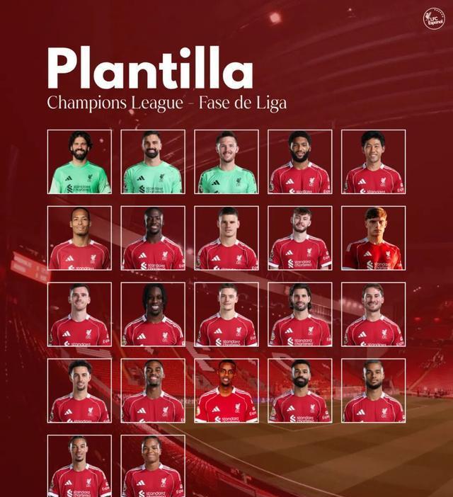 以下是利物浦欧冠联赛阶段 22 人 A 名单